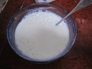 倒入适量纯牛奶,用勺子把蜂蜜活开。