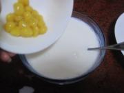 倒入沥干水分的芒果小圆子即可。