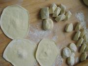 拿出醒好的面团,搓条,下剂子,擀皮。