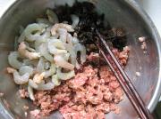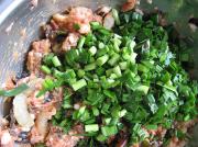 最后包的时候在加入切好的韭菜末,并搅拌均匀。