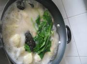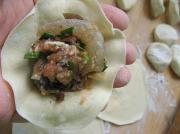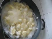 锅中加入清水(或鸡汤)、少许料酒、酱油、盐,烧沸,下饺子。