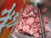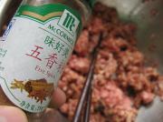 将肉馅放入一个干净的盆里,加入料酒、酱油、盐。