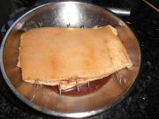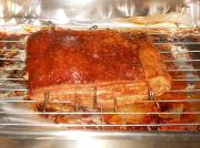 用锡纸将肉的四周包裹严密,只留下肉皮露在外面,烤箱预热到480F/250C度或以上的高温放入肉,烤约40分钟。