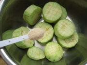 将切好的茄子加盐抓匀,腌制入味。
