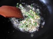 原锅留油,下葱姜蒜末炝锅。