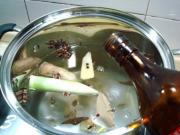 倒入适量黄酒煮开。