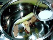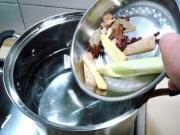 往汤锅里放入香料。
