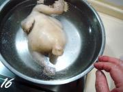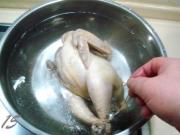 浸泡好后捞出,控净鸡膛内的水份。