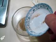 调制蘸料汁;把沙姜粉倒入碗中。