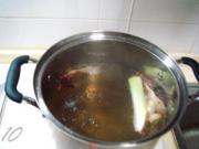 锅中的白卤汤已烧开,改为中火,令其汤面稍滚即可。