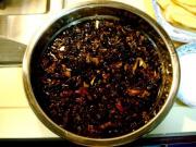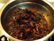 在烧开的调味品锅中,放入洗净的梅干菜进行熬煮。