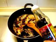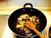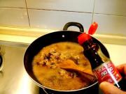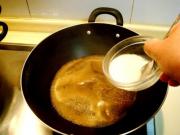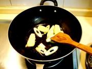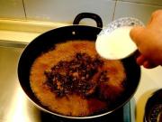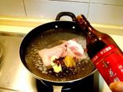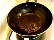 炒勺上火烧热,倒入刚才煎肉方时的剩油,煸香八角。