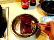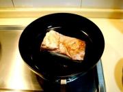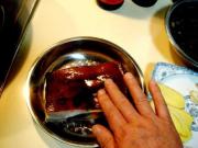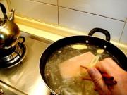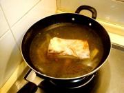 然后趁热把肉方放入先前煮肉的汤水中浸泡10-15分钟。