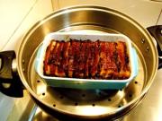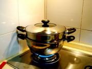 蒸笼水烧开,把码好梅菜和肉的蒸盘置入笼中。