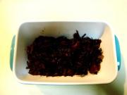 把煮好的梅菜取三分之一铺在蒸盘的底部。
