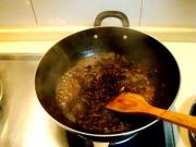 此时,煮梅菜的汤汁已逐渐稀少,用铲快速翻炒,留少许汤汁便可出锅。