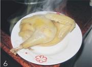 把煮熟的鸡捞出沥干水,斩成大小合适的块。