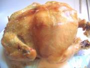 放入烤箱,350--400F,烤20--25分钟左右,再拿出鸡只来翻身,再用上述的方法埋好鸡,再烤20--25分。