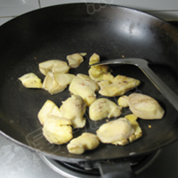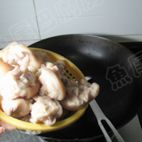锅洗净,烧热,放入猪脚,干锅不停翻炒猪脚,直至猪脚呈很干爽状。