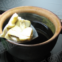把添丁甜醋倒进砂锅中,大火煮开后加入炒好姜块。
