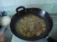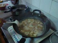 起油锅加入韭菜翻炒后加入适量水烧开.水开后加入云吞.