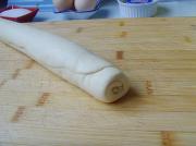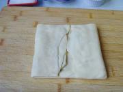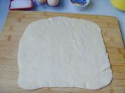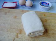 将松弛好的面团用压面棍擀成长方形,大概是奶油3倍的大小。