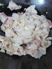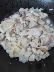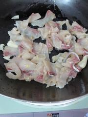 因为鱼片超薄,不要大力翻动。轻轻翻动一、两下即可放少量水稍焖一、两分钟即可关火。(鱼肉腌制的时候已经调味了的,不用再放盐调味了。)
