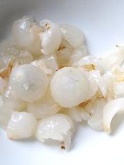 荔枝剥壳去核用盐水浸泡备用。