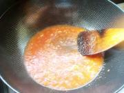 锅里放油,放入蒜末煸炒。再放入番茄酱翻炒。
