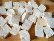 把豆腐切成小块。