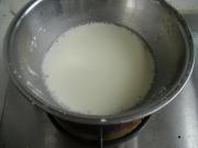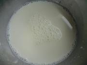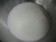 牛奶加入白糖放到和加热的容器内搅拌均匀。