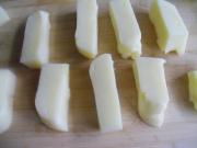 取出冷冻好的奶块,切成均匀的块状。