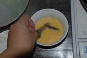 虾先沾蛋液。