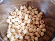 用温水下锅泡发莲子。