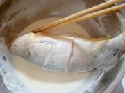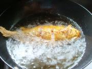 淀粉、料酒、水调匀,倒入锅中添加香油调味。