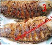炸至呈黄褐色,鱼骨酥脆,捞出沥油备用。