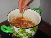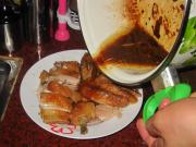 把鸡肉放入锅内使每块鸡肉上都沾上酱汁。