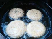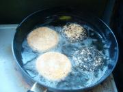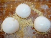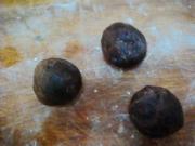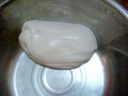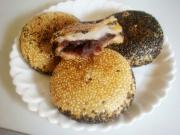 取适量面团按扁,放入豆沙馅包起来团成圆球状。