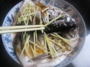 再蒸10分钟,闷2分钟,把姜片去掉,蒸鱼的汁再倒掉。