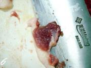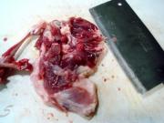 用刀剔除鸭腿骨。