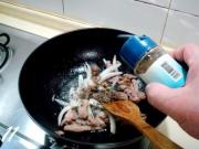 煸出香味后,再撒少许胡椒粉炒匀。