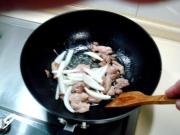 继续把鸭片煸至焦香,煸好后下入洋葱煸炒。