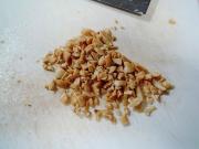 把油炸花生米拍碎呈小颗粒状。