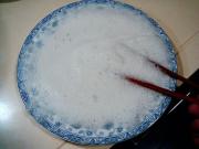 打鸡蛋清倒入一只较浅的瓷盘里。