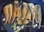 爆香之后把煎好的小黄鱼放进去。