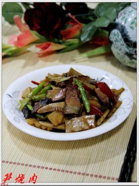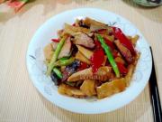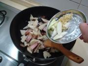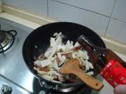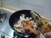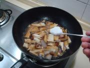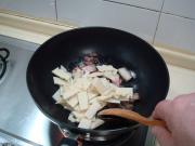 把肉煸炒出油后,下入冬笋煸炒。