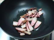 锅中放少许底油,下入咸肉煸炒。