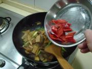 放入红椒翻炒数下。