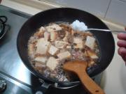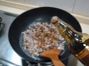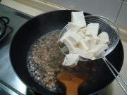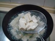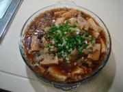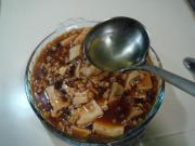 用手勺烧适量热猪油,油烧至七成热,然后浇淋在豆腐上。