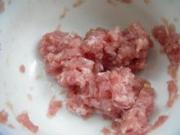 准备肉馅,倒入泡过姜葱的水两勺,盐适量,黄酒一小勺。